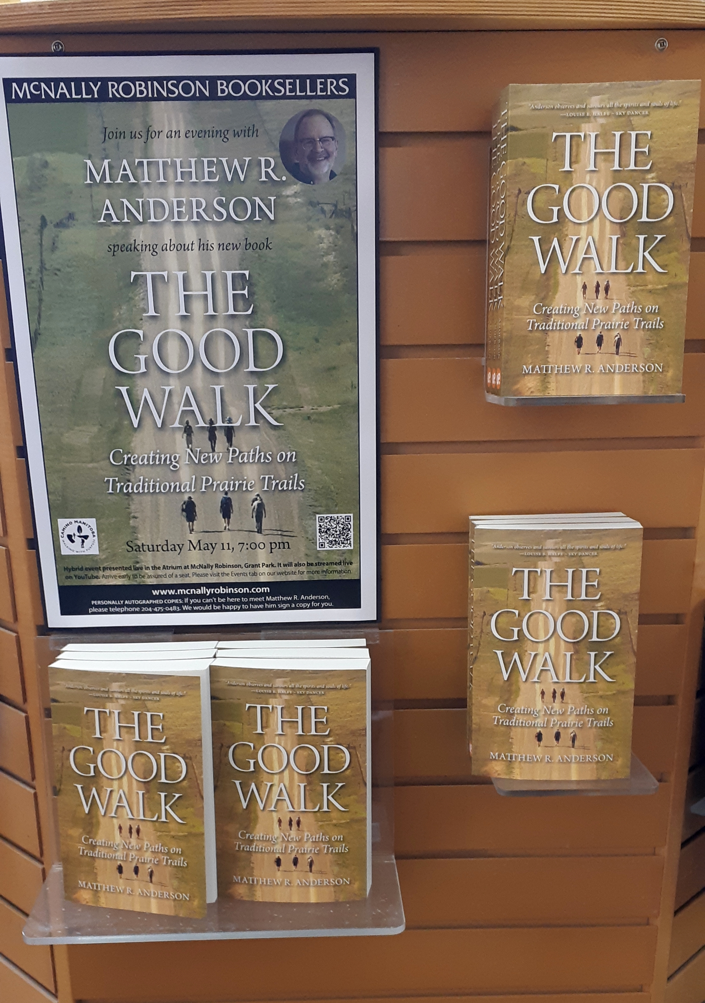 Today is the official launch of The Good Walk (University of Regina Press, 2024). It’s no longer listed on all the websites as “pre-order.” It’s out in the wild. And here’s a photo from McNally-Robinson Bookstore in Winnipeg to prove it!!