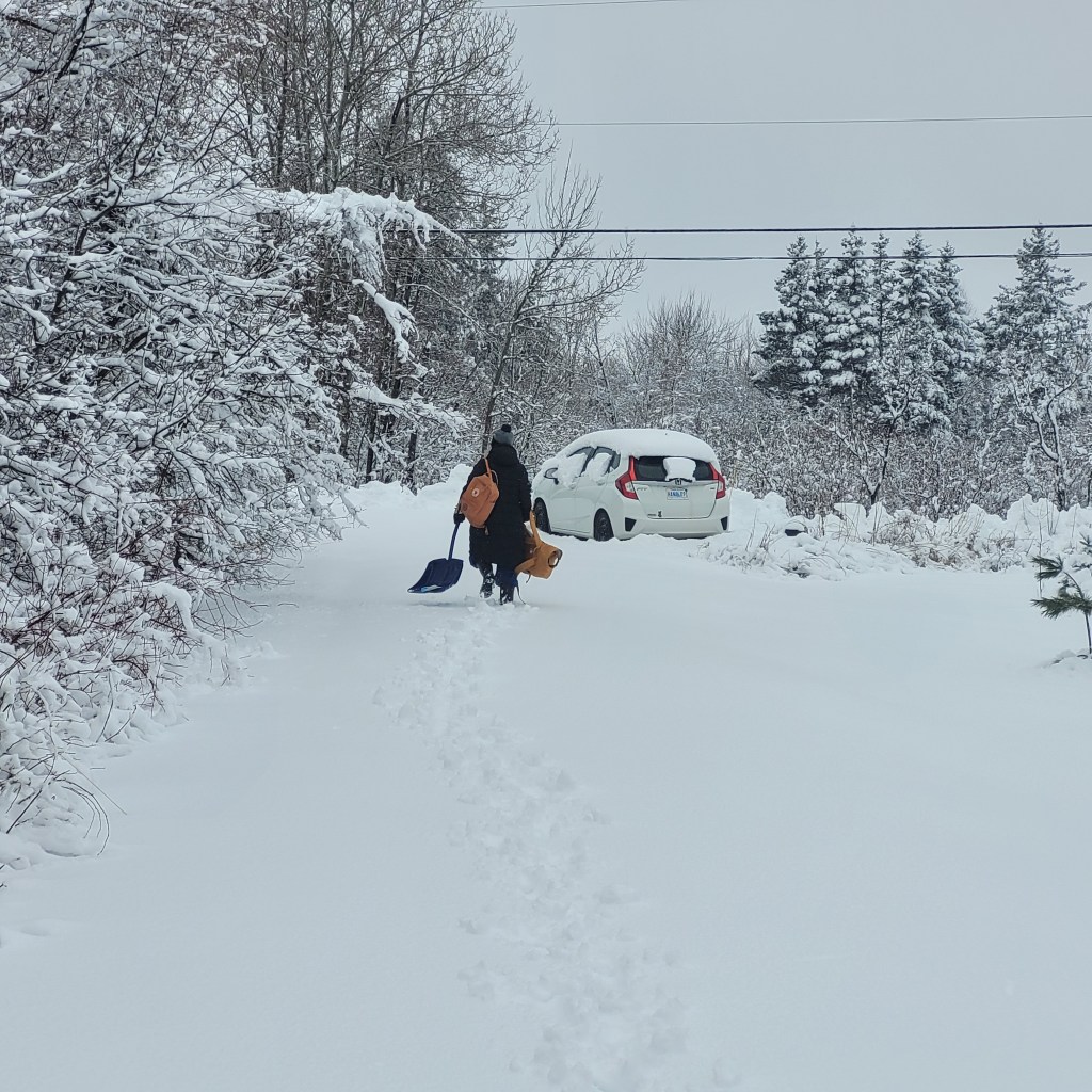It wasn’t the snowstorm. Having to park the car by the road at the end of our lane to be sure we can get to work in the morning isn’t that strange, even though the snow-laden trees are beautiful. Here in Pomquet, in Antigonish County, a storm day requiring our neighbour to come plow us out is starting to feel like a bi-weekly event. I had some trouble keeping up with Sara on her march to the car. But no, it wasn’t that.