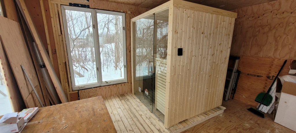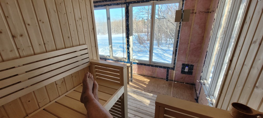 As I mentioned in a recent blog-post, when I had a brief but serious cancer scare not long ago, I decided life is short, and I’d buy a Finnish sauna kit. Ever since my wonderful years with the Finns of Montreal’s St Michael’s church, saunas have been in my blood – and my dreams. I know it’s an incredible privilege to have retirement savings, and to spend some of them on such a luxury. But when I get cold my entire left side seizes up, making walking difficult. And the sauna sure makes my left side – AND the rest of me – feel good!