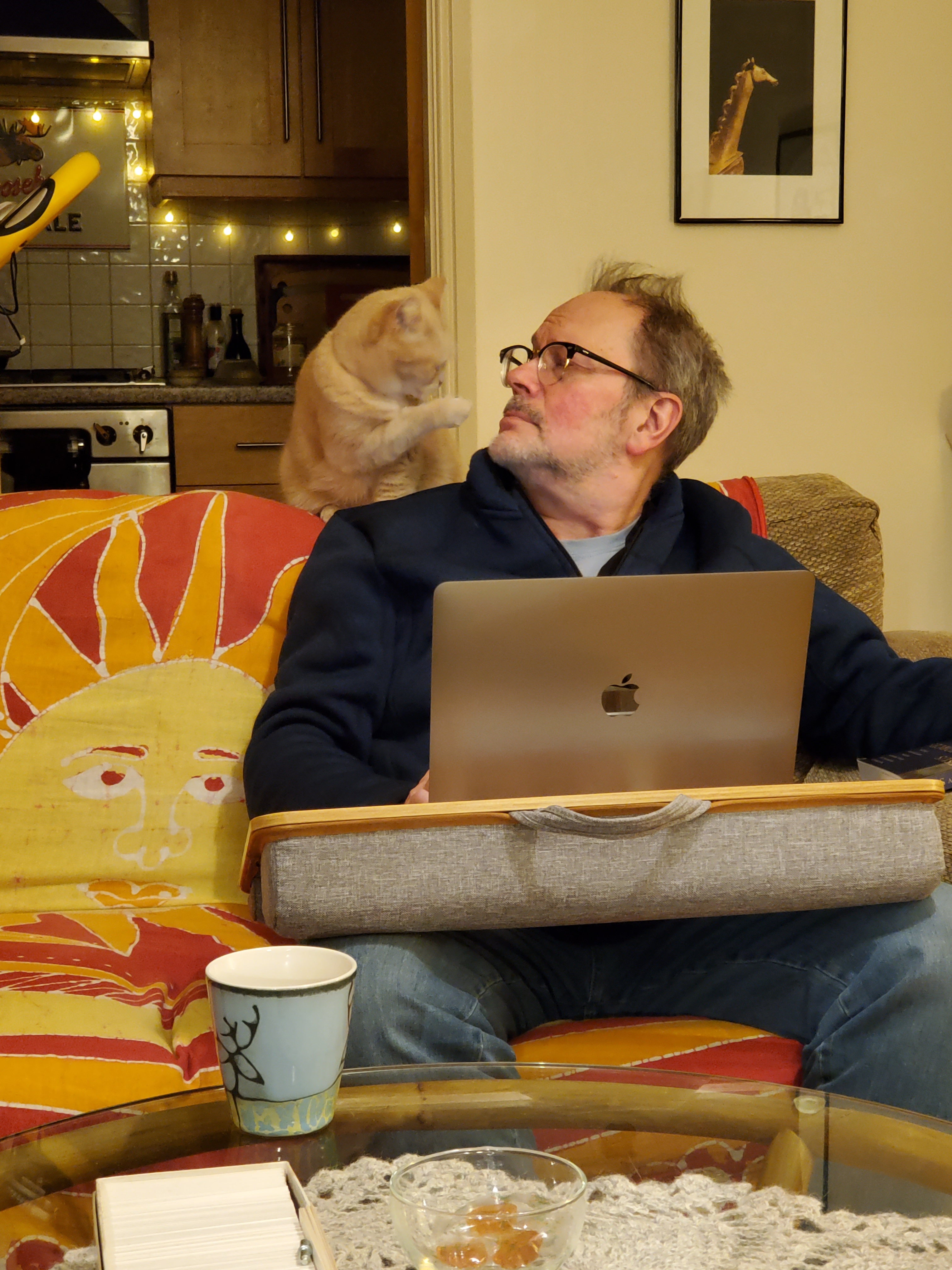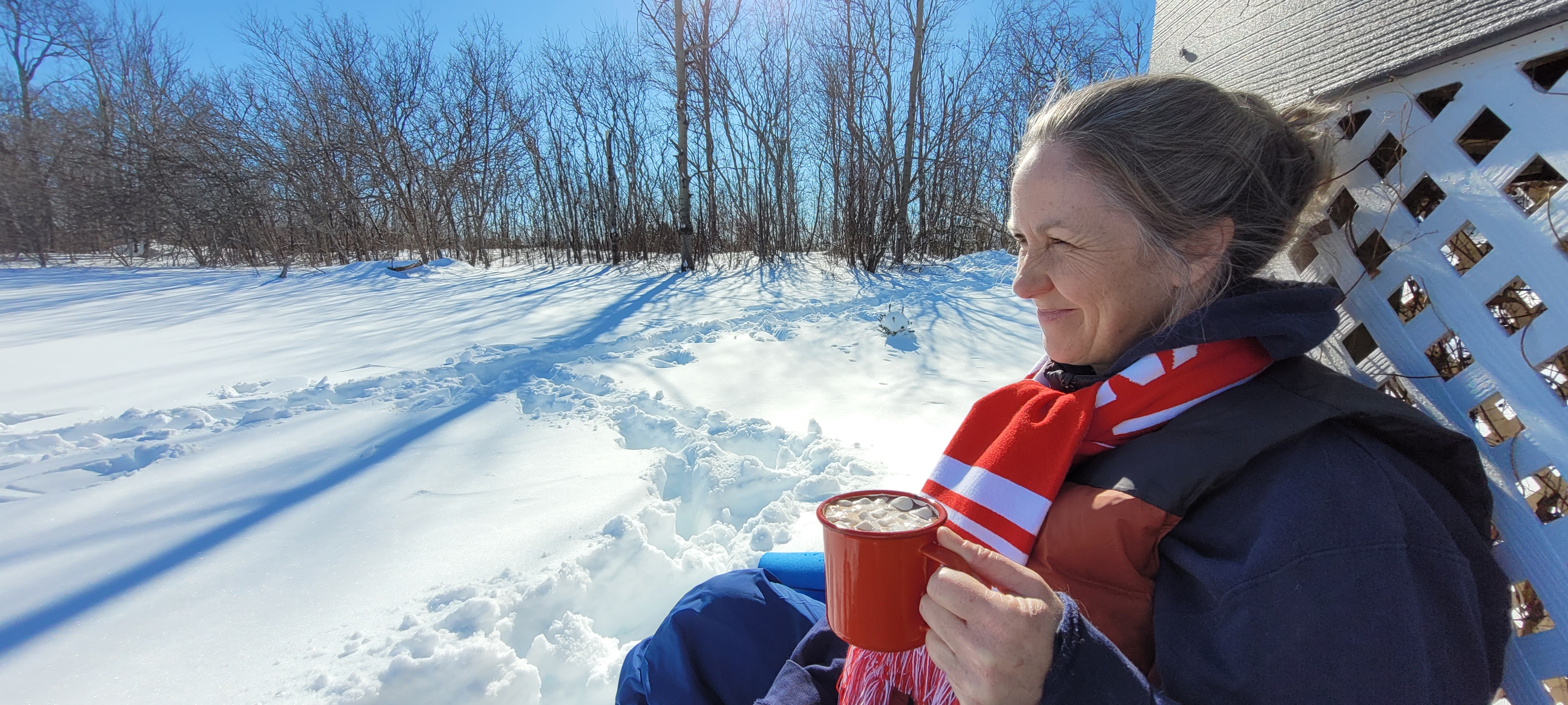 I continue to measure my progress by small victories. For the first time since the stroke I can now straighten my fingers enough to put on just about any gloves (you’d be surprised how hard that’s been). After one of our seemingly endless snowstorms I backed up the car and realised I wasn’t using the camera but doing it the old-fashioned way: steering with my left hand, and looking over my shoulder with my (good) right hand behind the passenger seat. Like everyone else in Nova Scotia I’ve done a LOT of shovelling lately, using both hands. On one sunny day last week last week Sara and I had a hot chocolate date in the snow. I’m able to sit down and get back up from those more difficult places much more easily. My typing is faster and my guitar playing just slightly smoother every week.