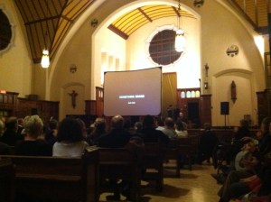 Luke, the musician we’d hired to play spanish guitar, was excellent. The speeches were….well, they were speeches…but some managed to point quite well to what pilgrimage really is, and the importance of studying this exceptional social and spiritual revival. When the lights finally dimmed, there was a buzz of excitement in the room. Or maybe that was the butterflies in my stomach.